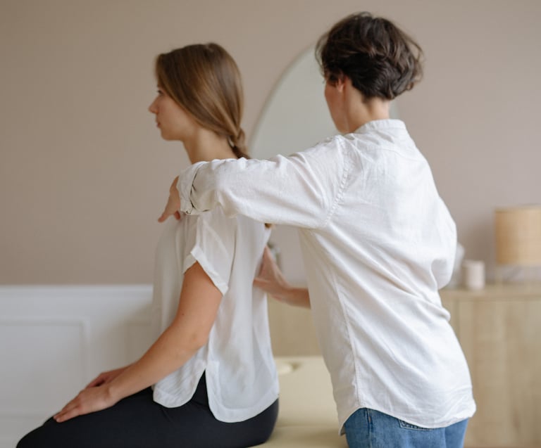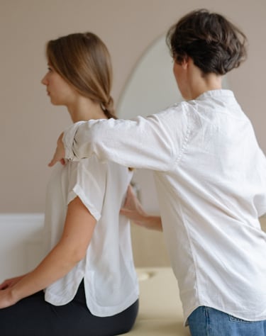 Fully clothed, seated or table massage, with a focus on back, neck, and shoulder tension